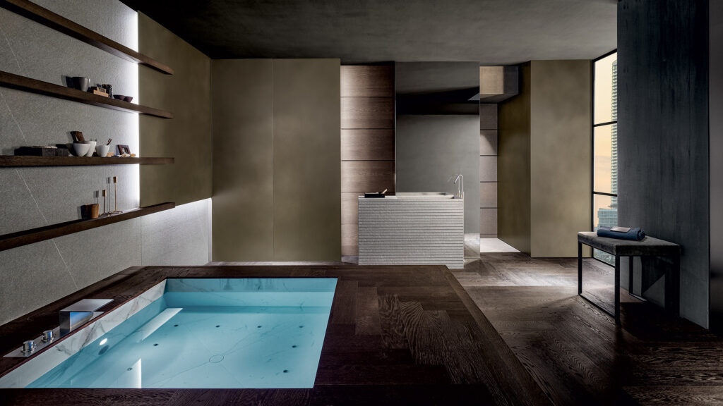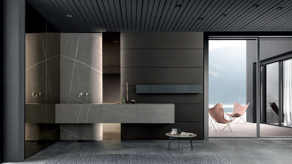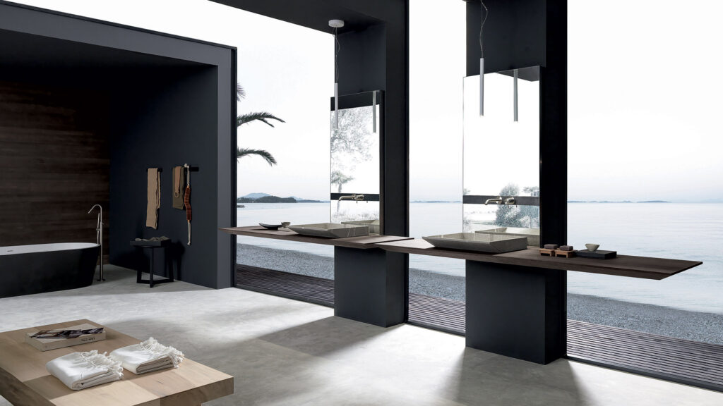 I bagni moderni Modulnova, l’ambiente per eccellenza dedicato al benessere della persona viene arricchito di particolari realizzati dall’accoppiamento innovativo di materiali come il rovere carbone e il Tecnoril, di Moon Gola, o il massello di teak e l’alluminio grafite, dei bagni Blade.
