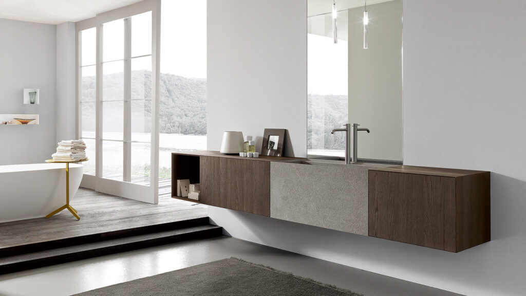 Una combinazione di materiali esclusivi e volumi inediti al servizio di una cultura del progetto espressione del lifestyle Modulnova.